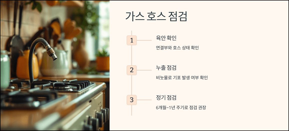 - 가스 호스는 6개월에서 1년 주기로 정기 점검하는 것이 좋습니다.