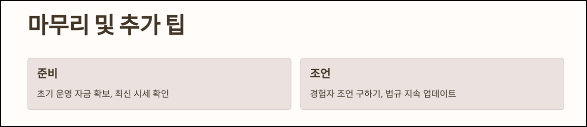 - 면허 취득 후, 초기 운영 자금을 충분히 준비하세요.