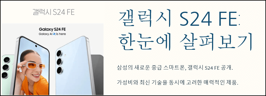 삼성의 새로운 중급 스마트폰, 갤럭시 S24 FE가 공개되었습니다. 이번 포스팅에서는 갤럭시 S24 FE의 사전예약 정보, 스펙, 가격, 디자인 등 다양한 요소를 심도 있게 살펴보려고 합니다. 가성비와 최신 기술을 동시에 고려하는 소비자들에게 딱 맞는 스마트폰인 갤럭시 S24 FE는 어떤 매력을 가지고 있을까요? 지금부터 알아보겠습니다.