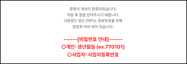 프린트발급을 선택하였을 때 아래와 같은 팝업메뉴가 나오면서 pdf로 저장됩니다.