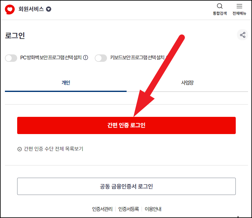 - 공동인증서(구 공인인증서)를 이용한 로그인
