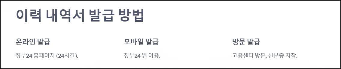 - 모바일 발급: 정부24 앱(고용보험 100%) 이용