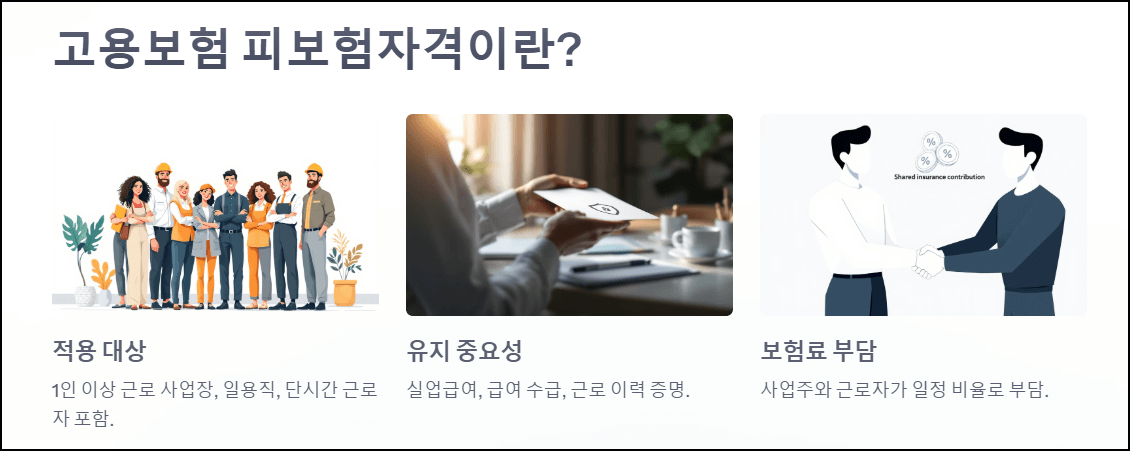 고용보험 피보험자격이란 근로자가 고용보험 적용 대상이 되어 보험에 가입된 상태를 의미합니다. 고용보험은 근로자가 실업급여, 육아휴직급여 등의 혜택을 받을 수 있도록 돕는 중요한 제도입니다.
