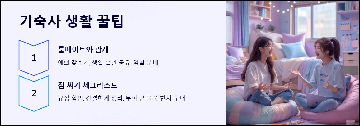 기숙사 생활을 더욱 편리하고 즐겁게 만들기 위한 실용적인 팁을 소개합니다.