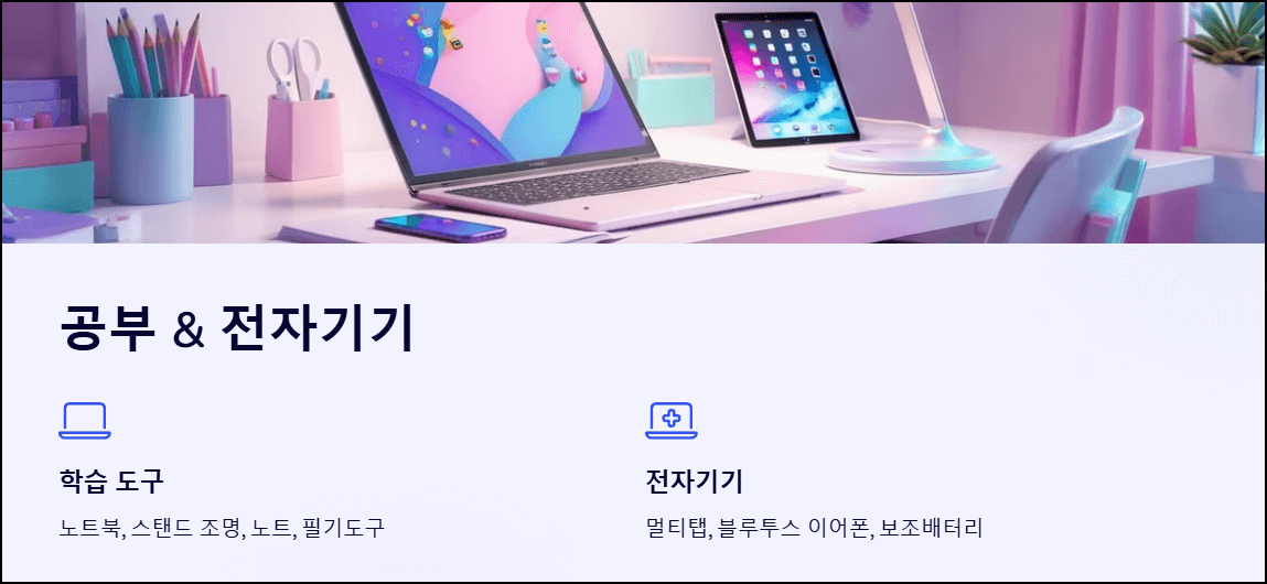공부를 효율적으로 하기 위해 필요한 물품을 챙겨가면 좋습니다.