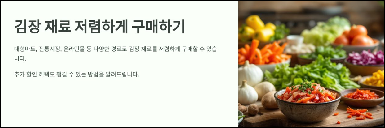 - 팁: 대형마트 앱 알림을 켜두면 김장 재료 할인 시작 시기를 놓치지 않고 활용할 수 있습니다. 또한, 추가 할인 혜택을 제공하는 멤버십에 가입해보는 것도 좋습니다.