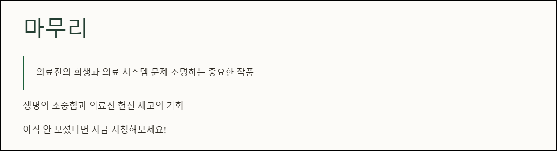 드라마 ‘중증외상센터’는 단순한 오락물이 아니라, 의료진의 희생과 현실 속 의료 시스템의 문제를 조명하는 중요한 작품입니다. 아직 시청하지 않았다면, 지금 바로 시청하며 생명의 소중함과 의료진의 헌신에 대해 다시금 생각해 보는 시간을 가져보세요!