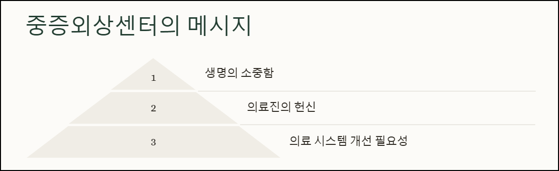 - 중증외상센터와 같은 공공 의료 시설의 중요성 재조명.