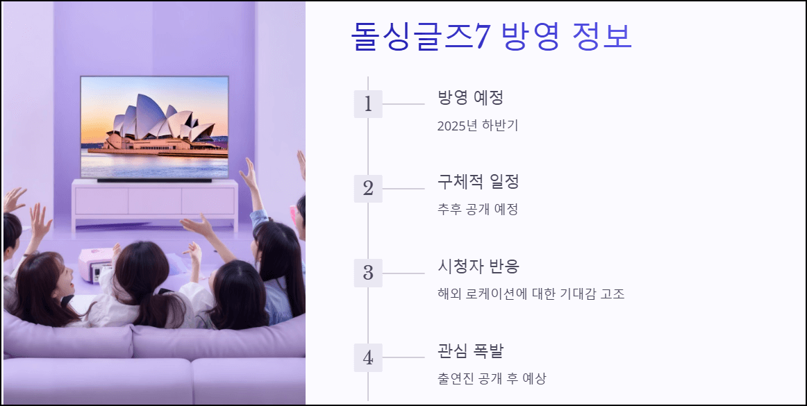 시즌7의 방송 일정 및 출연진 정보는 공식 홈페이지와 SNS를 통해 지속적으로 업데이트될 예정이니, 관심 있는 분들은 꾸준히 체크해보시길 추천합니다!