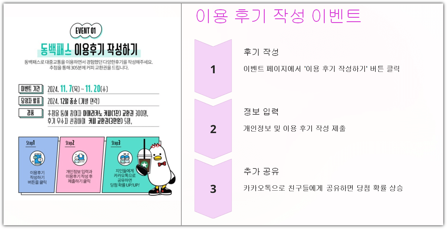 - 이용 후기 작성: 동백패스 이용 후기를 작성해 참여
