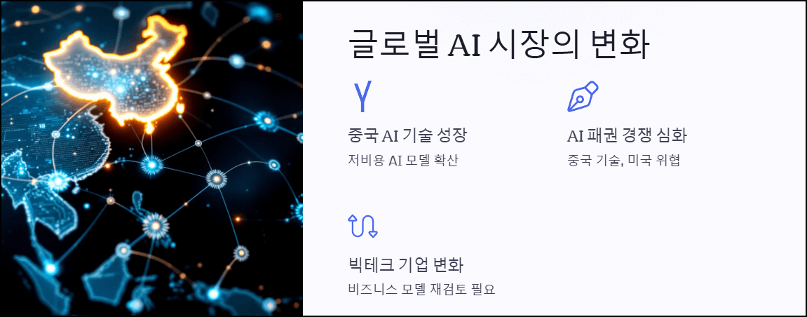 - 저비용 AI 모델 확산: 기존 고비용 중심의 AI 시장 구조를 변화