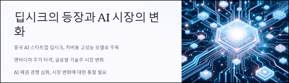 딥시크의 등장은 글로벌 AI 시장에서 새로운 변화의 시작을 알리는 신호로 평가받고 있습니다.