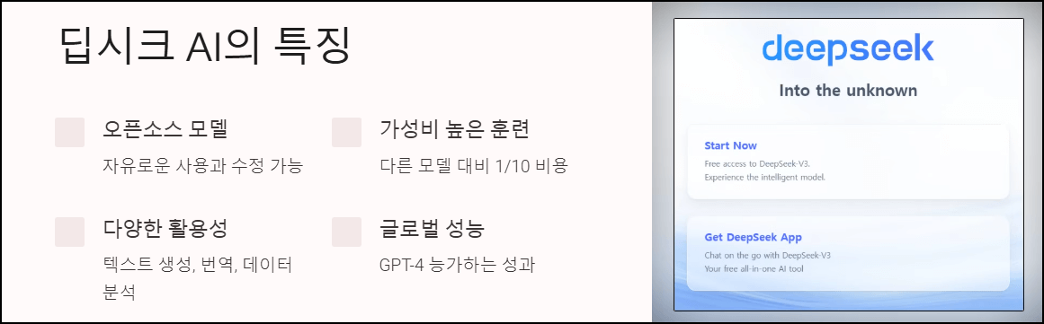 - 사고 과정 투명성: 딥시크는 AI의 추론 과정을 공개하며 신뢰도를 높입니다.
