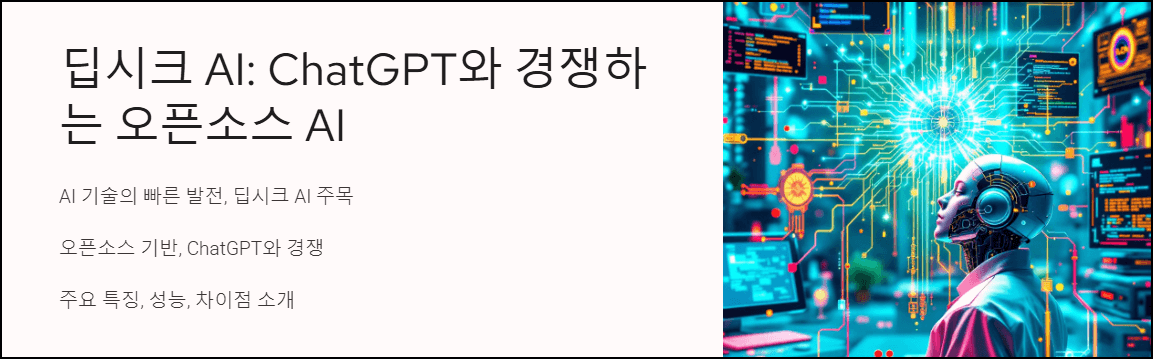 이번 글에서는 딥시크 AI의 주요 특징, 성능, 그리고 ChatGPT와의 차이점을 자세히 알아보겠습니다. 딥시크 AI를 이해하고 싶다면 끝까지 읽어보세요!