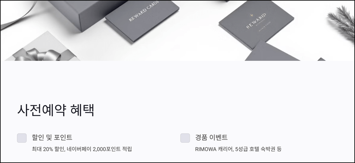 - 경품 이벤트: 사전예약 고객 2,024명을 대상으로 RIMOWA 캐리어, 5성급 호텔 숙박권 등 다양한 경품을 증정합니다.