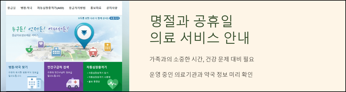 이번글에서는 명절, 휴일에 운영하는 병원과 약국을 찾는 방법에 대하여 알아보겠습니다.