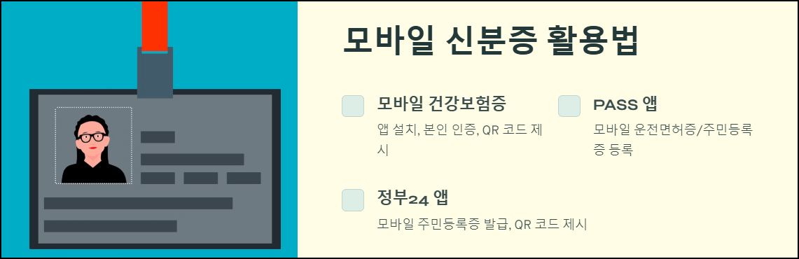 - 발급: PASS 앱에서 모바일 운전면허증이나 주민등록증을 등록하면 신분증으로 활용 가능합니다.