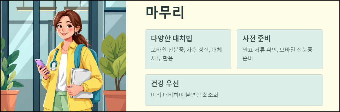 항상 병원 방문 전에 필요한 서류를 확인하고, 모바일 신분증을 미리 준비하면 불편함을 줄일 수 있습니다. 건강을 위해 미리 대비하세요! 😊