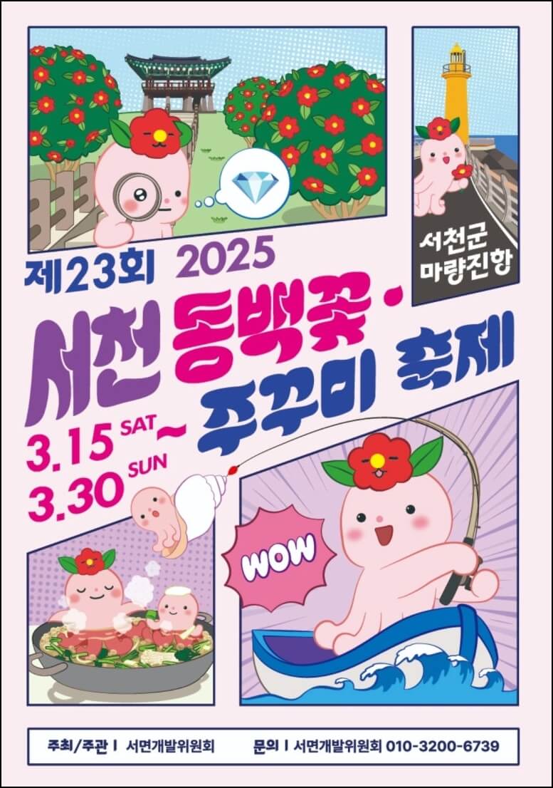 서천 동백꽃 주꾸미축제는 미식과 자연, 체험이 어우러진 최고의 봄 축제입니다. 가족, 연인, 친구들과 함께 방문하여 아름다운 동백꽃과 쫄깃한 주꾸미를 맛보는 특별한 경험을 해보세요!
