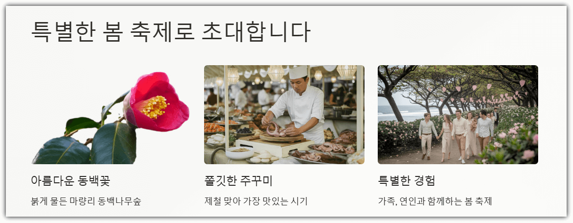 서천 동백꽃 주꾸미축제는 봄의 아름다운 자연과 맛있는 미식을 함께 즐길 수 있는 최적의 축제입니다.