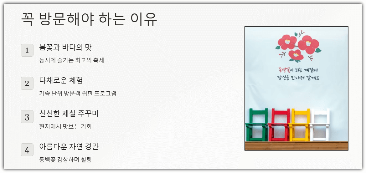 - 봄꽃과 바다의 맛을 동시에 즐길 수 있는 최고의 축제!