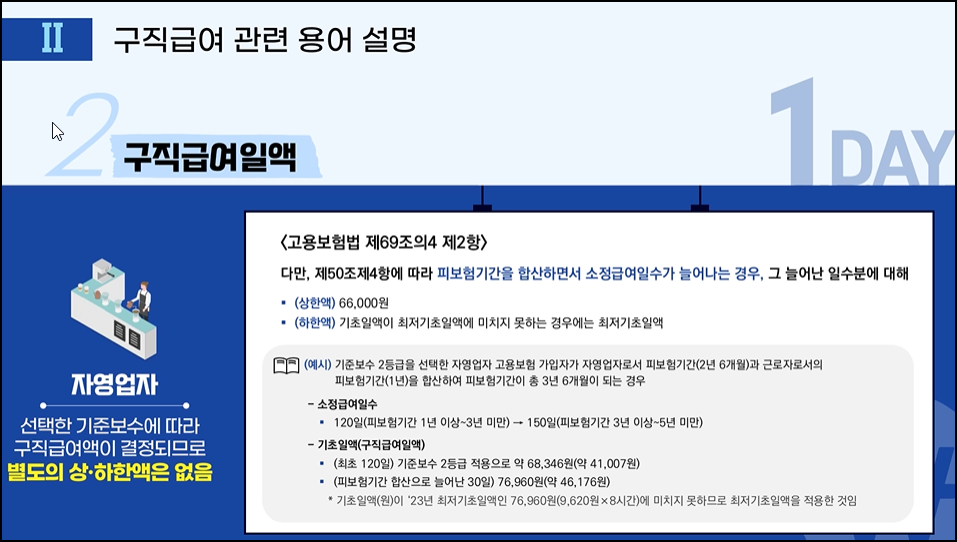 교육 내용은 이후 수급 자격 신청 시 도움이 되므로, 강의를 주의 깊게 듣고 교육자료를 필요할 경우 저장해 두는 것이 좋습니다.