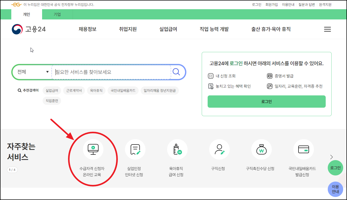 1. 수급자격 신청 온라인교육 수강 방법