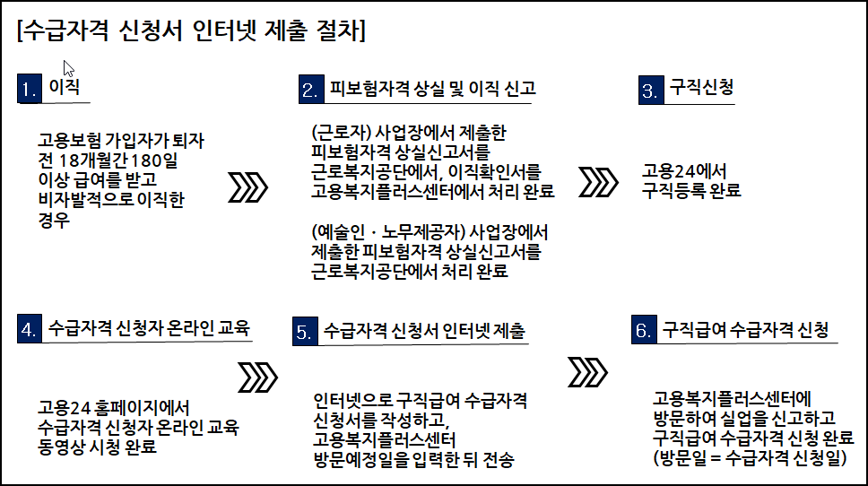 - 인터넷에서 구직급여수급자격 신청서를 작성합니다..
