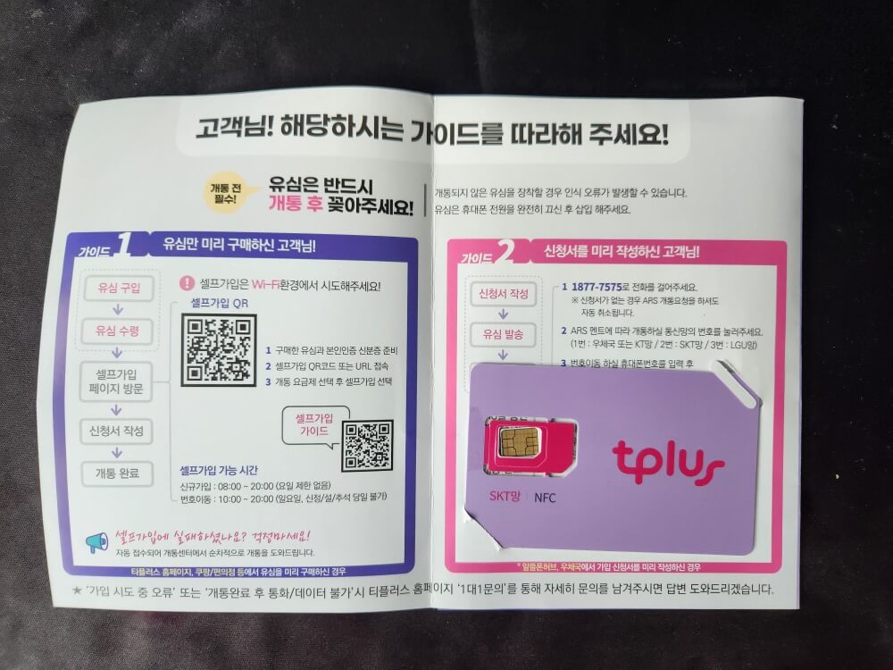 - 유심 개통방법에 대한 가이드를 읽어봅니다.