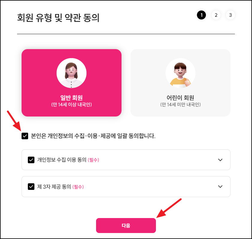 - '개인정보 수집·이용·제공에 일괄 동의합니다'에 체크합니다.