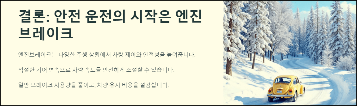 - 엔진브레이크는 눈길이나 빙판길, 내리막길 등 다양한 주행 상황에서 차량 제어와 안전성을 높여주는 필수 기술입니다.