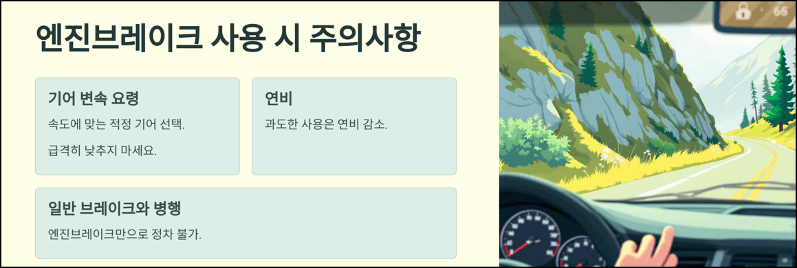 운전 초보자부터 베테랑까지, 누구에게나 중요한 엔진브레이크! 올바른 사용법을 익혀 경제적이고 안전한 운전을 즐겨보세요. 🚗