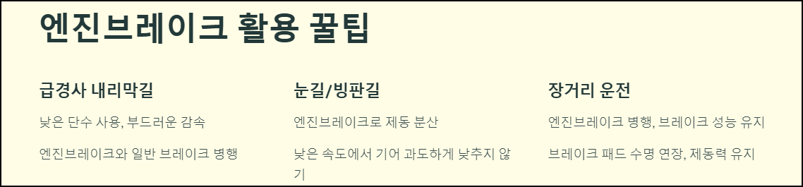 효과적으로 엔진브레이크를 활용하기 위해 알아두면 좋은 실전 팁을 소개합니다.