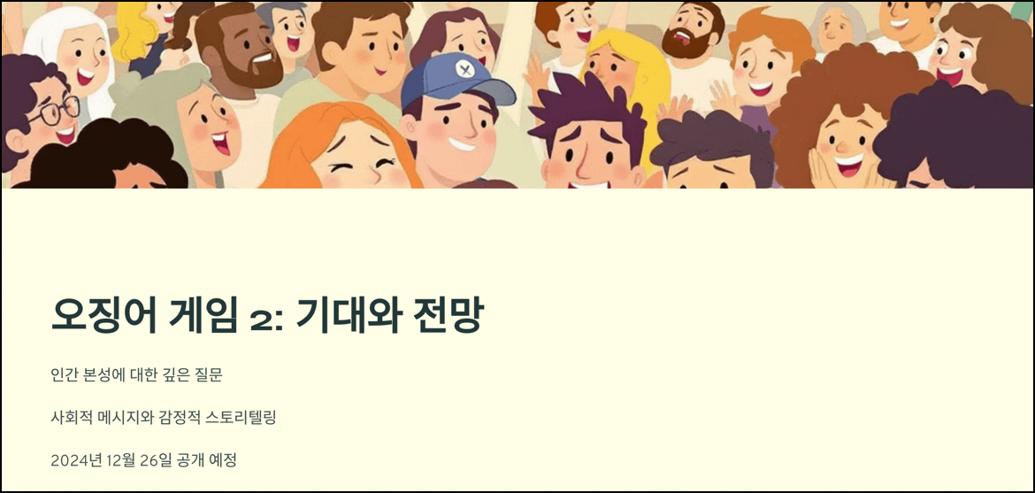 오징어게임2는 단순한 생존 경쟁을 넘어 인간 본성에 대한 깊은 질문을 던지는 작품으로, 사회적 메시지와 감정적인 스토리텔링을 통해 더욱 풍성해진 이야기를 선사할 예정입니다.