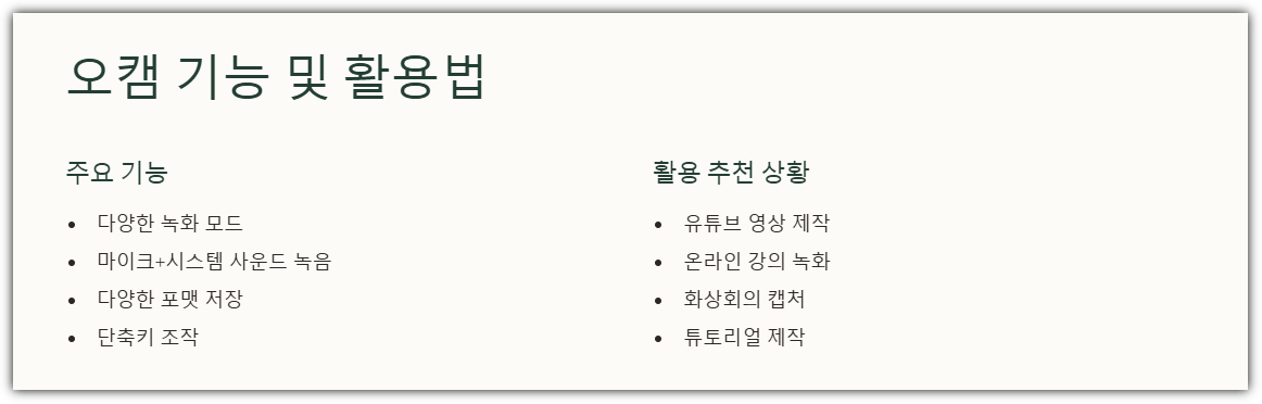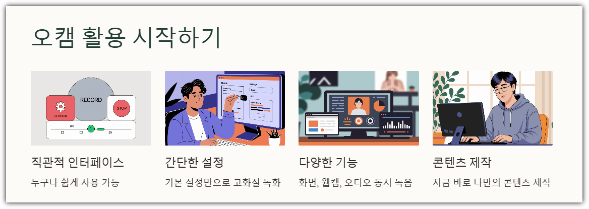 📌 오캠은 직관적이고 가벼우며, 누구나 쉽게 사용할 수 있는 무료 화면 녹화 프로그램입니다.