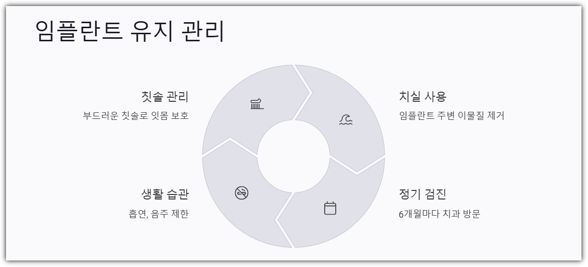 임플란트 시술 후 성공적인 회복을 위해서는 철저한 관리가 필요합니다.