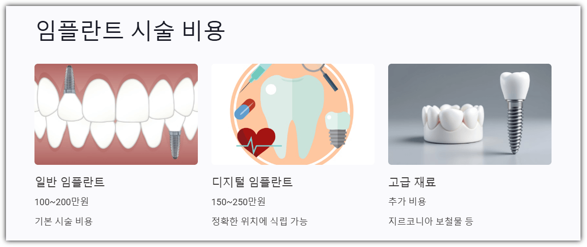 - 일반 임플란트: 평균 100만200만 원