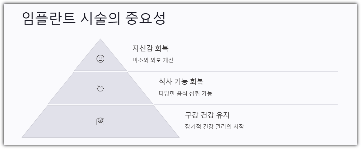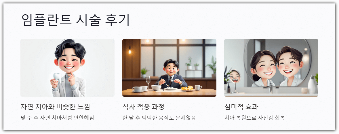 - 심미적 효과: "잃어버린 치아를 복원하니 자신감이 생겼어요."
