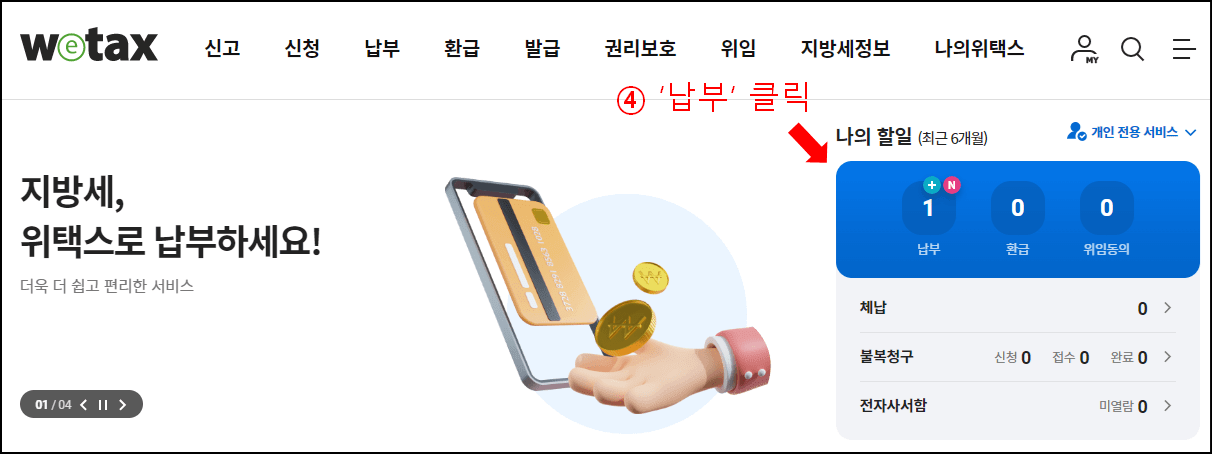아래 버튼으로 빠르게 재산세 납부를 할 수 있습니다.