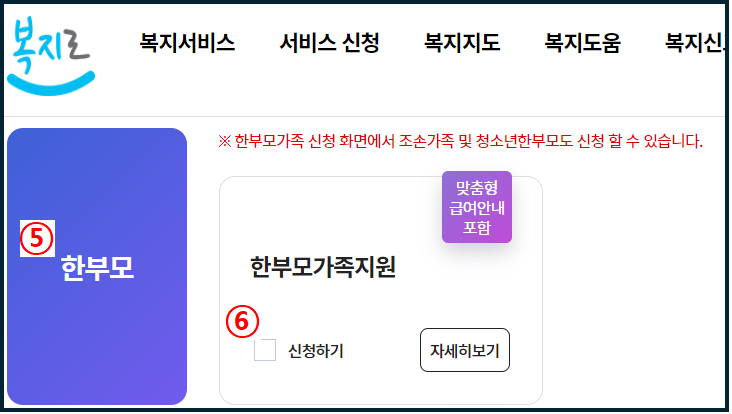 - 아동을 양육하고 있는 만 24세 이하인 부 또는 모가 소득이 기준 중위소득 65% 이하인 한부모 가구를 지원합니다
