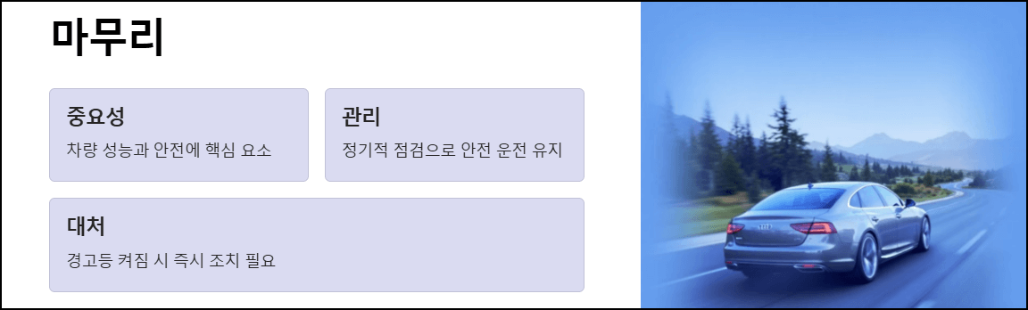 - 승차감이 떨어지고 도로 충격이 차체에 전달됨.