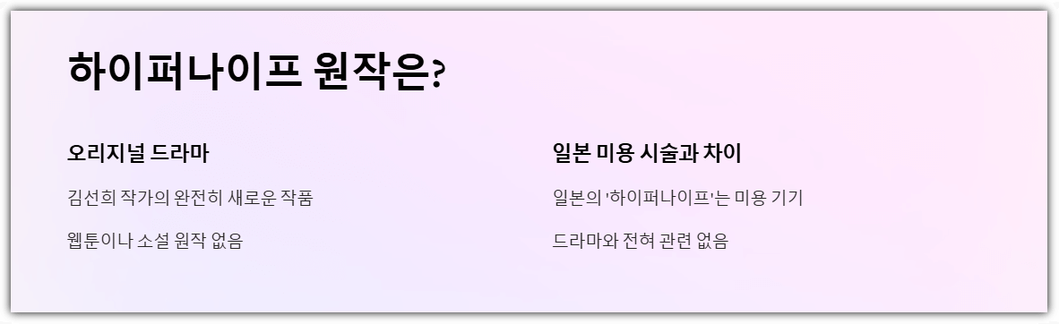 많은 사람들이 ‘하이퍼나이프’가 웹툰이나 소설 원작이 있는지 궁금해하지만, 이 드라마는 오리지널 시리즈로 제작되었습니다.