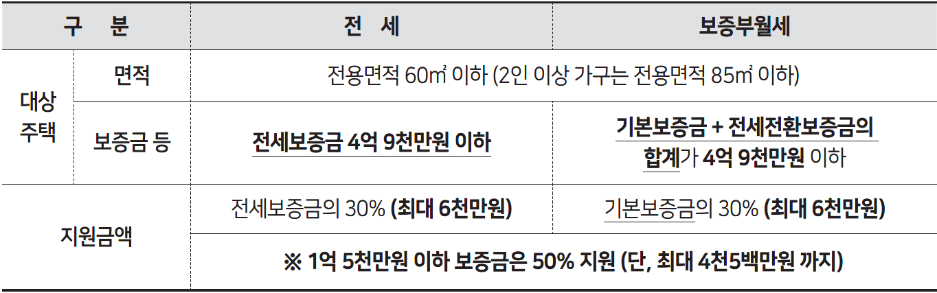 - 오피스텔은 전입신고, 바닥 난방, 취사시설, 화장실을 구비한 경우만 지원 가능