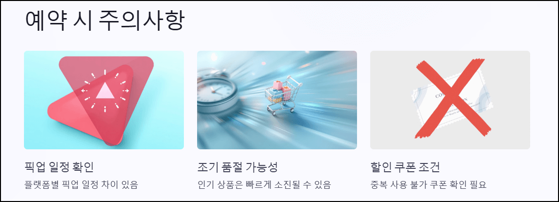 - 예약한 플랫폼에 따라 픽업 일정이 달라질 수 있습니다.