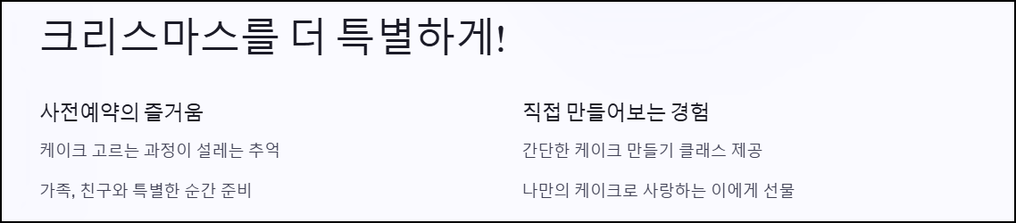 - 크리스마스를 기다리며, 케이크를 고르는 과정 자체가 설레는 추억이 됩니다.