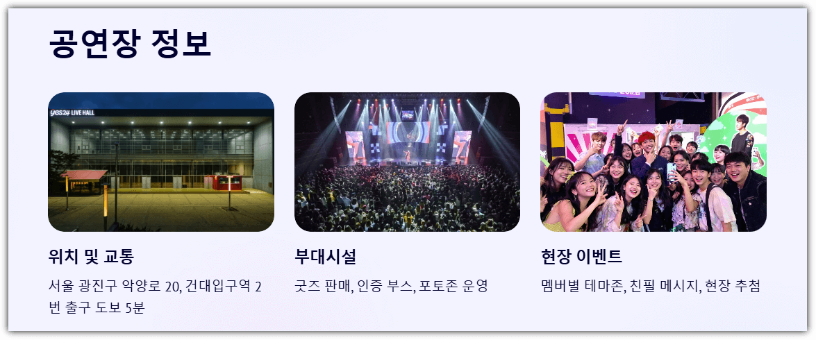 - 기념품 교환, 슬로건 나눔 등 팬 문화 참여도 함께 준비해두면 좋아요