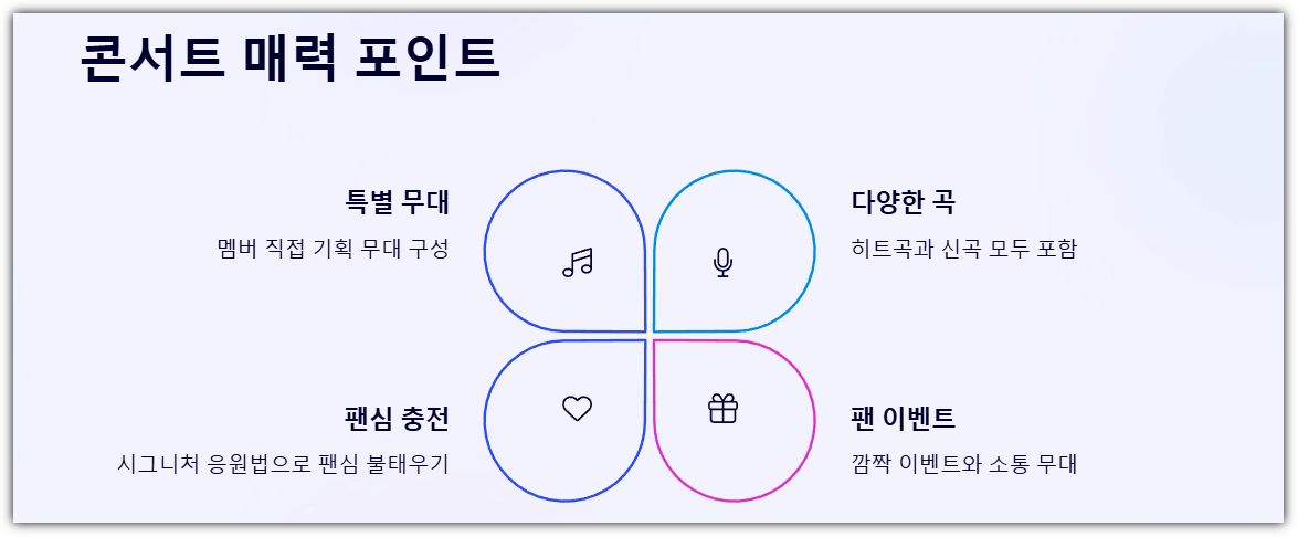 - 히트곡과 신곡을 모두 즐길 수 있는 셋리스트
