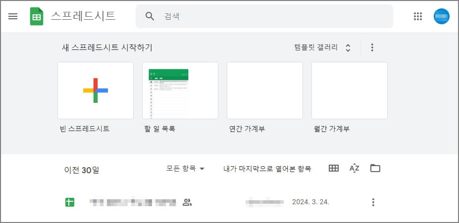 3. '스프레드시트'에서 + 를 눌러 빈 스프레드시트를 클릭합니다