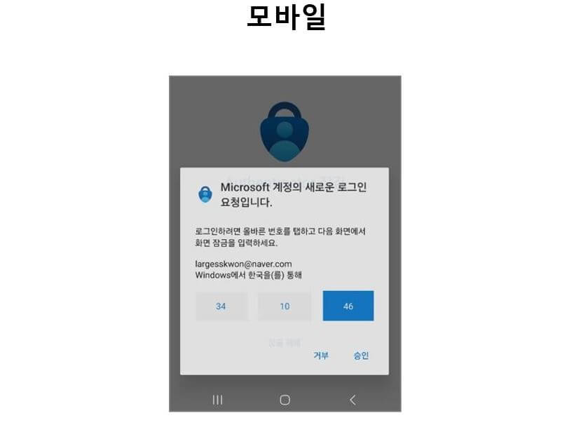 - Microsoft에서 보낸 인증번호를 모바일 Authenticatior 앱을 통하여 확인합니다.